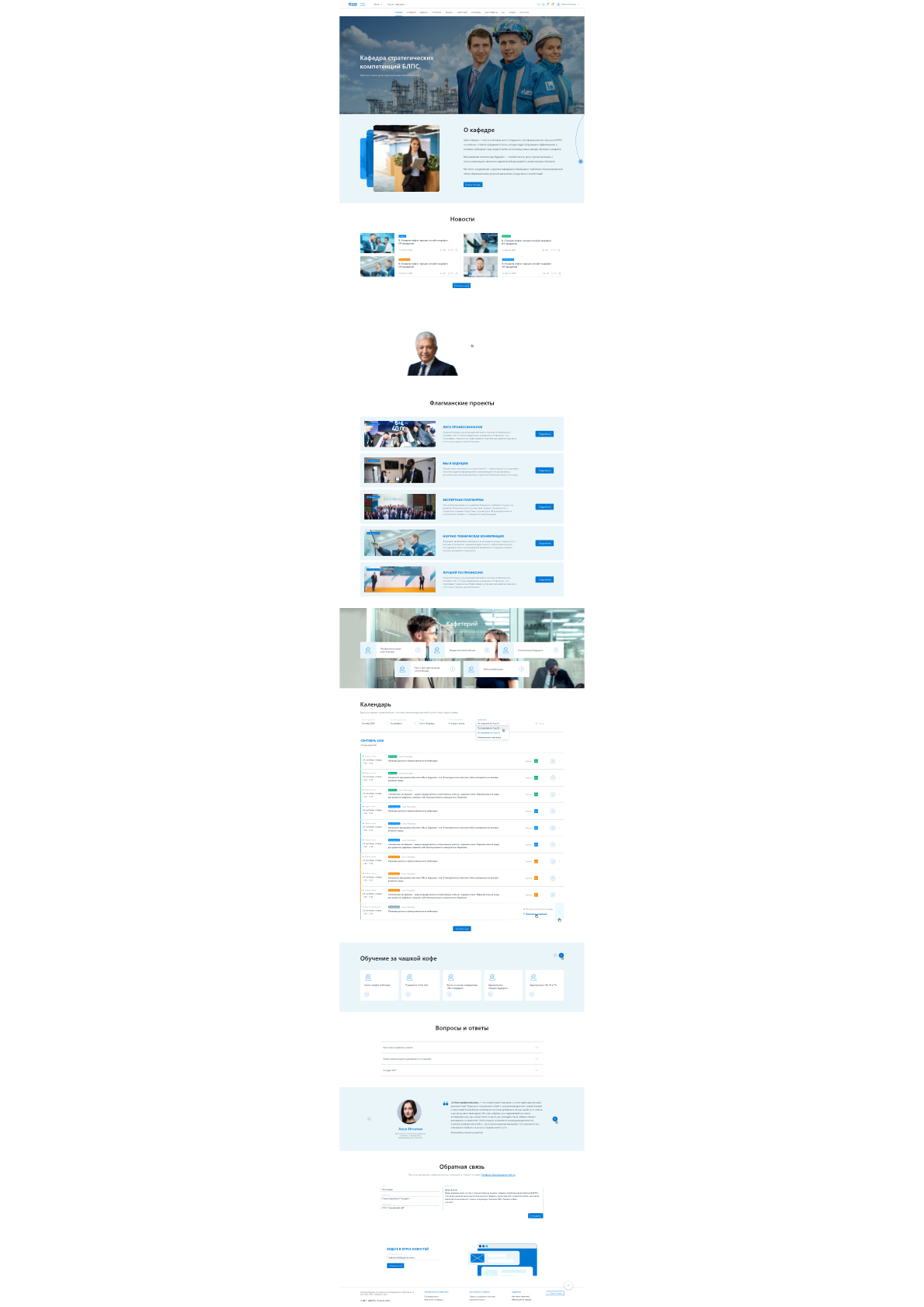 Кафедра стратегических компетенций — это полноценное образовательное подразделение, которое курирует всю систему обучения блока логистики, переработки и сбыта (БЛПС). Сейчас информация о мероприятиях и инструментах развития находится в разных разделах портала, сотрудникам тяжело ориентироваться в развивающих мероприятиях БЛПС. Страница кафедры станет единым цифровым окном, которое упростит сотрудникам доступ к информации о возможностях развития и выступит единым прозрачным каналом коммуникации. Требуется разработать лендинговую и сопутствующие страницы в соответствии с макетами в Figma и прилагаемым ТЗ, а также уведомления и веб-отчеты.